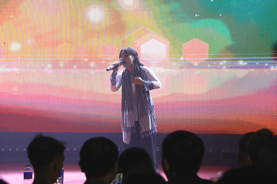 Giọng ca Sùng Hoàng Hải, K69 QLTNR với quãng giọng rộng và khả năng kiểm soát sân khấu tuyệt vời đã khiến cả hội trường phải trầm trồ