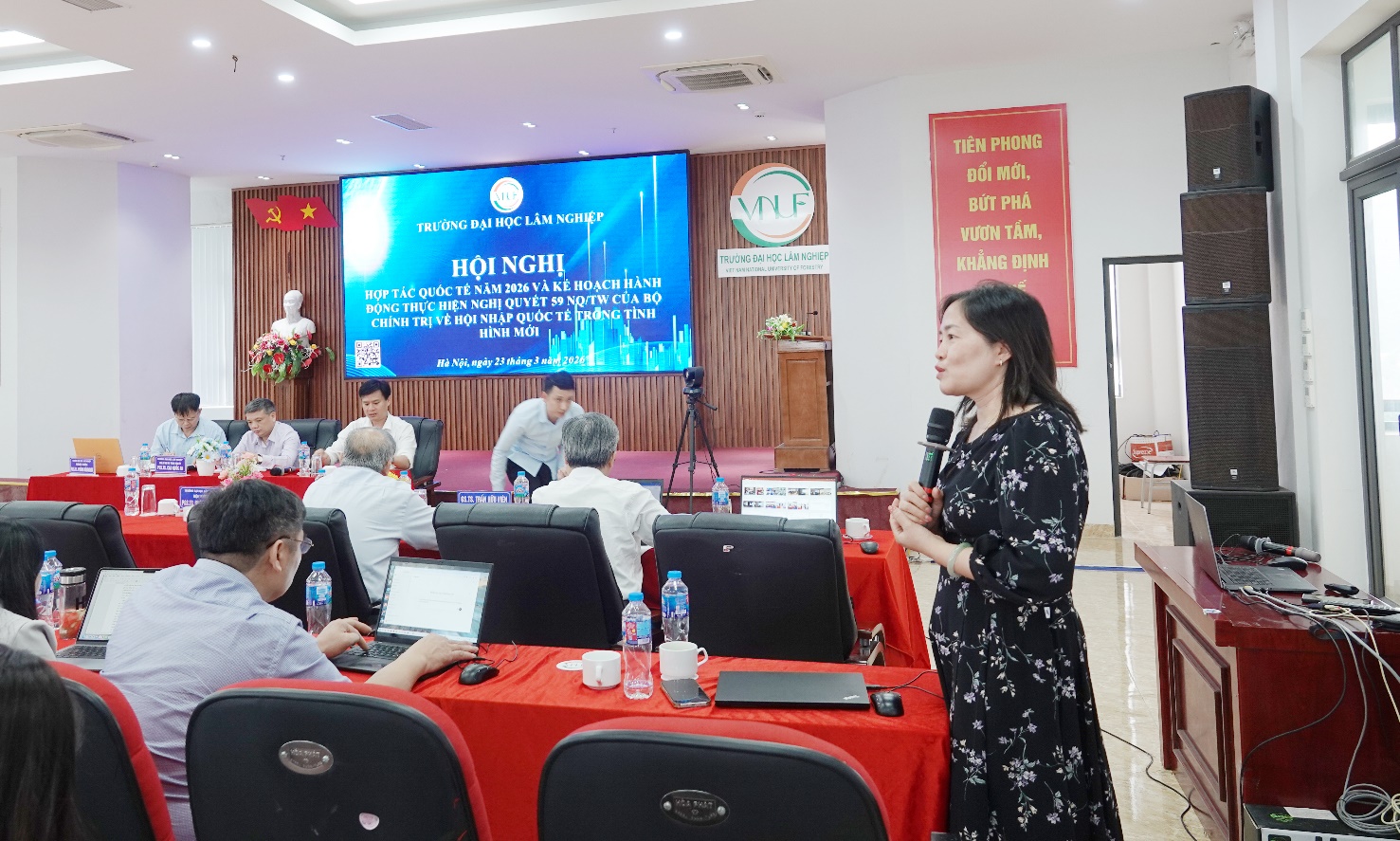 Phát biểu kết luận, PGS.TS. Phùng Văn Khoa đánh giá cao kết quả HTQT năm 2025 và nhấn mạnh: HTQT cần được triển khai đồng bộ với các hoạt động đào tạo, nghiên cứu khoa học và chuyển giao công nghệ, góp phần nâng cao năng lực cạnh tranh và vị thế quốc tế của Nhà trường. Đồng thời, giao Phòng HTQT làm đầu mối phối hợp với các đơn vị xây dựng và triển khai hiệu quả các chương trình, dự án hợp tác. Với định hướng chủ động hội nhập – nâng tầm quốc tế – phát triển bền vững, Nhà trường phấn đấu trở thành trung tâm đào tạo, nghiên cứu lâm nghiệp nhiệt đới có uy tín trong khu vực và trên thế giới, góp phần đưa tri thức Việt Nam ra thế giới và đưa thế giới đến với Việt Nam.