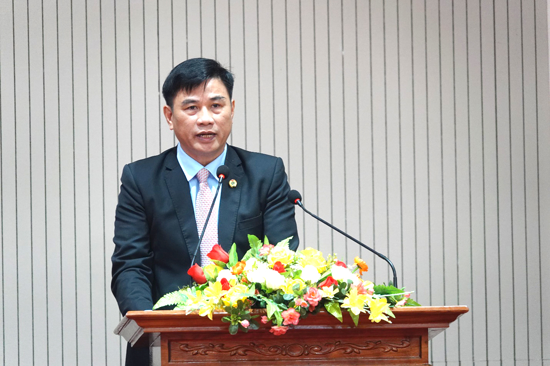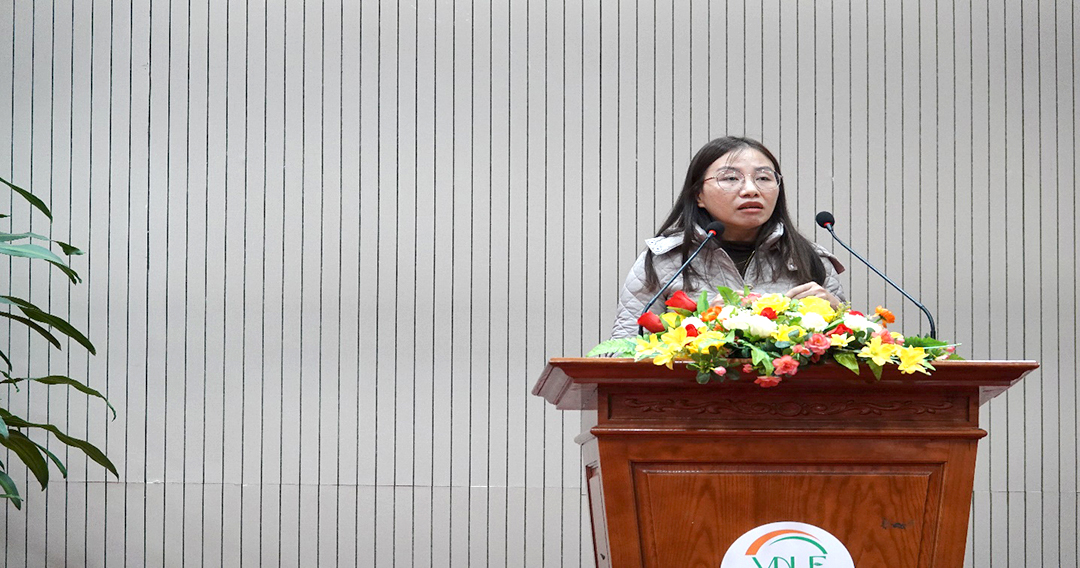 Đồng chí Trần Ngọc Thể – đại diện Ban Thường vụ Công đoàn Trường, trình bày báo cáo kết quả phong trào thi đua năm 2025