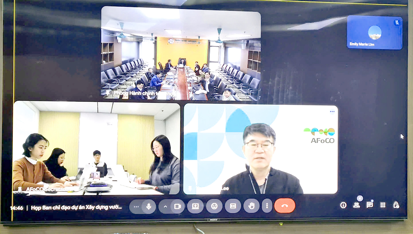 Cuộc họp do GS.TS. Phạm Văn Điển – Hiệu trưởng – Trưởng ban chỉ đạo chủ trì, với sự tham dự của TS. Lee Seonghan – Trưởng nhóm dự án ODA tổ chức Rừng Châu Á (AFoCO), TS. Lee Yeong Joo – Giám đốc văn phòng vùng AFoCO, PGS.TS. Phùng Văn Khoa – Phó Hiệu trưởng, TS. Lưu Tiến Đạt – đầu mối quốc gia AFoCO tại Việt Nam, Ban thư ký AFoCO cùng các thành viên Ban chỉ đạo, thành viên Ban quản lý dự án.