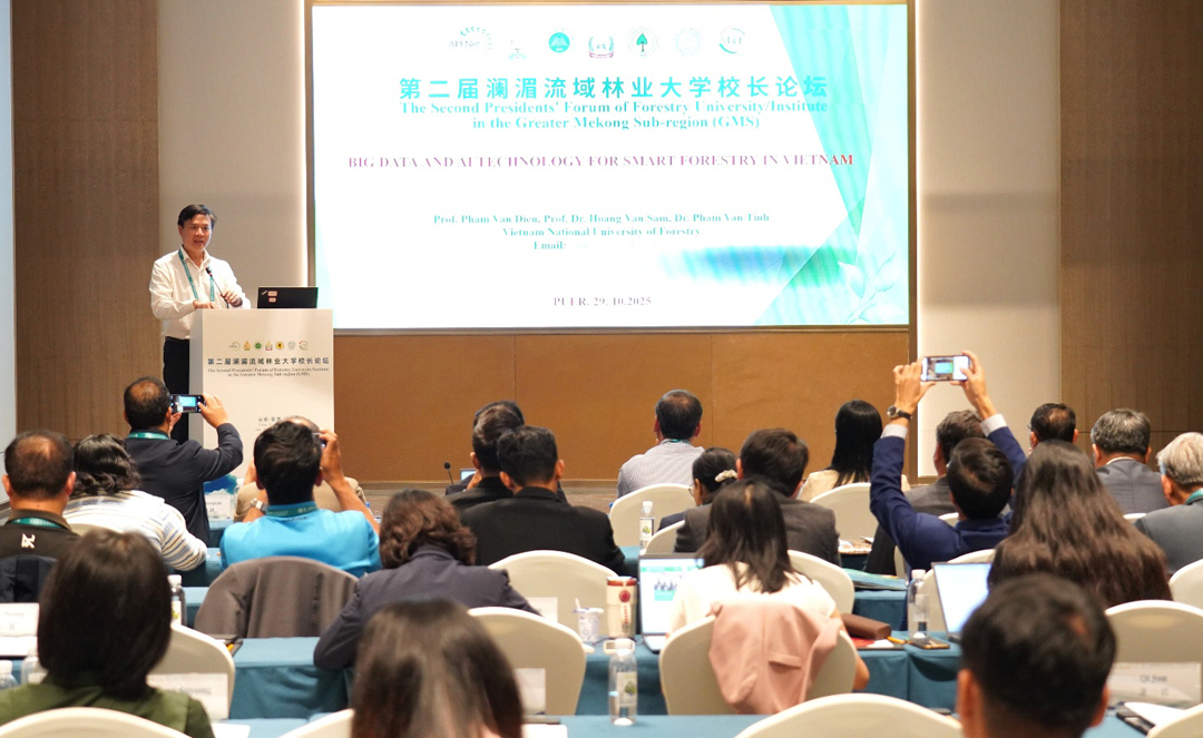 Tại diễn đàn, đại diện các trường đã trình bày kết quả nghiên cứu chuyên sâu về nghiên cứu khoa học lâm nghiệp, đổi mới sáng tạo, ứng dụng công nghệ trong nghiên cứu khoa học và quản lý tài nguyên rừng. GS.TS. Hoàng Văn Sâm được mời chủ trì phiên “Đào tạo và nghiên cứu khoa học trong Lâm nghiệp” và đại diện Việt Nam có bài trình bày “Ứng dụng dữ liệu lớn và AI trong Lâm nghiệp”.