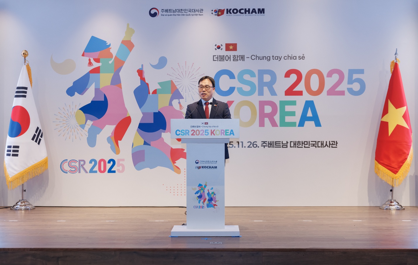 Tham dự sự kiện có Thứ trưởng bộ Ngoại giao Việt Nam ông Ngô Lê Văn, Đại sứ đặc mệnh toàn quyền Hàn Quốc tại Việt Nam ông Choi Young Sam, Chủ tịch KOCHAM ông Ko Tae Yeon cùng đại diện các doanh nghiệp Hàn Quốc.