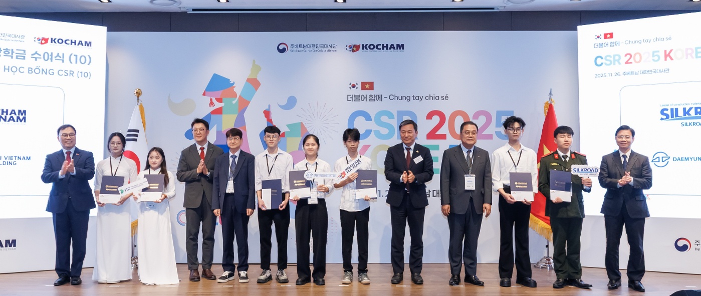 Chủ tịch KOCHAM ông Ko Tae Yeon nhấn mạnh, học bổng này không chỉ mang ý nghĩa hỗ trợ tài chính mà còn thể hiện sự tin tưởng, tạo cơ hội để sinh viên Việt Nam hòa nhập và phát triển trong môi trường doanh nghiệp Hàn Quốc.