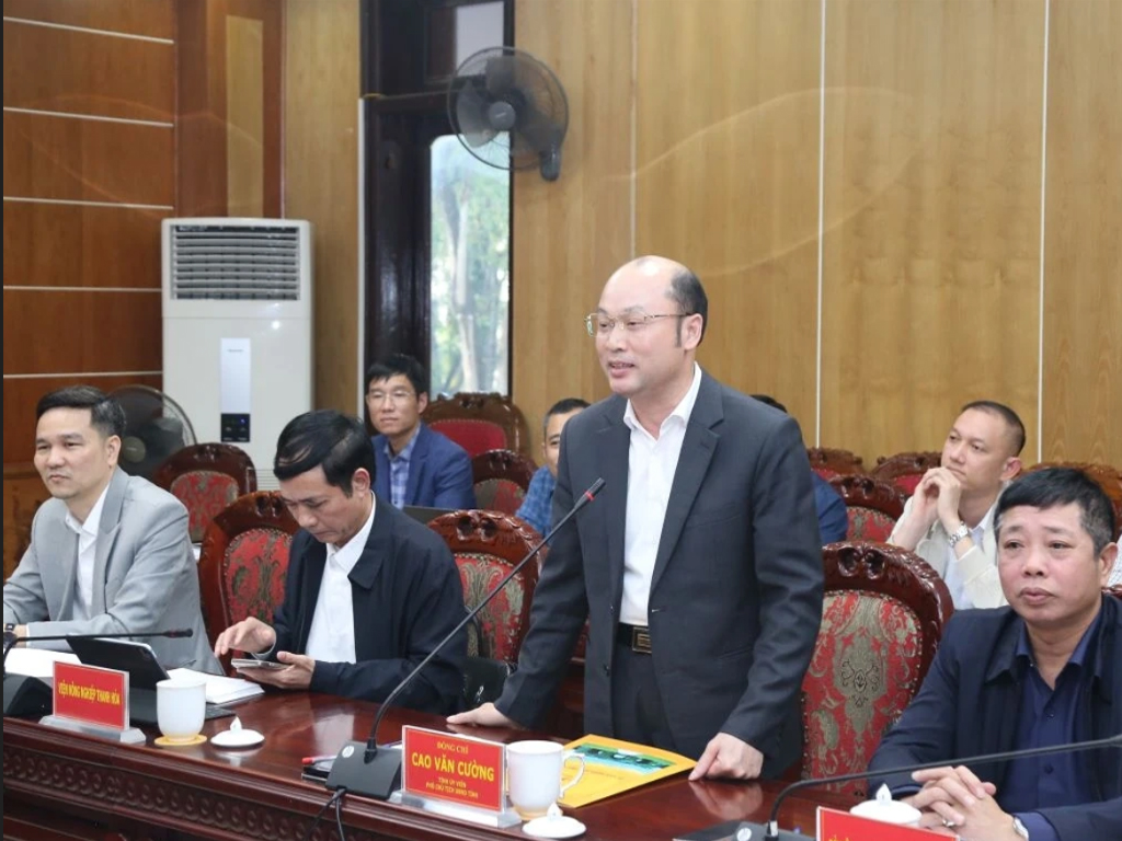 Phó Chủ tịch UBND tỉnh Thanh Hóa Cao Văn Cường phát biểu tại buổi làm việc.