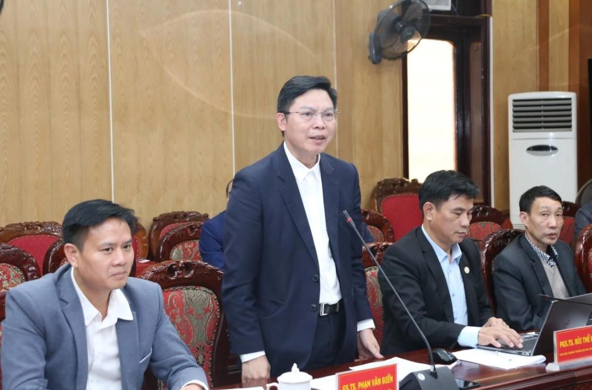 Phát biểu tại buổi làm việc, GS.TS. Phạm Văn Điển đã giới thiệu tổng quan về Trường ĐH Lâm nghiệp; những thế mạnh trong đào tạo, nghiên cứu, chuyển giao công nghệ của nhà trường.