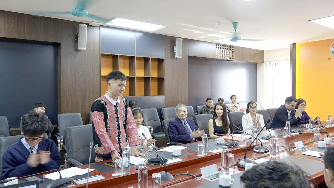 Sinh viên Ma Seo Sèng, đại diện các sinh viên nhận giải thưởng phát biểu
