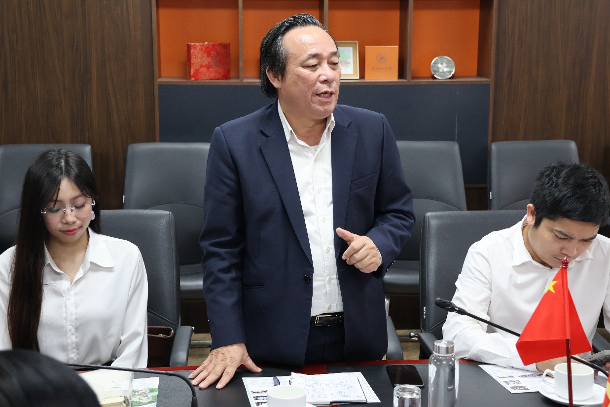 GS.TS. Hoàng Văn Sâm – Trưởng Phòng Hợp tác quốc tế báo cáo nội dung, kết quả đã thực hiện giữa Nhà trường với đối tác và các nội dung sẽ triển khai trong thời gian tiếp theo, đặc biệt là ký MOU hợp tác giữa Nhà trường với các đối tác sắp tới tại Trung Quốc.