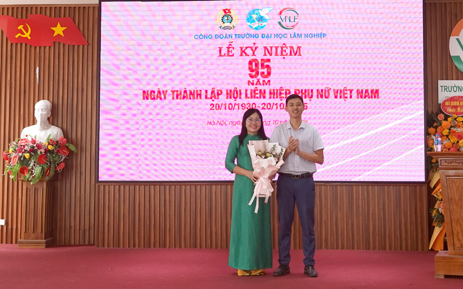 Lãnh đạo Nhà trường tặng hoa chúc mừng nữ cán bộ viên chức