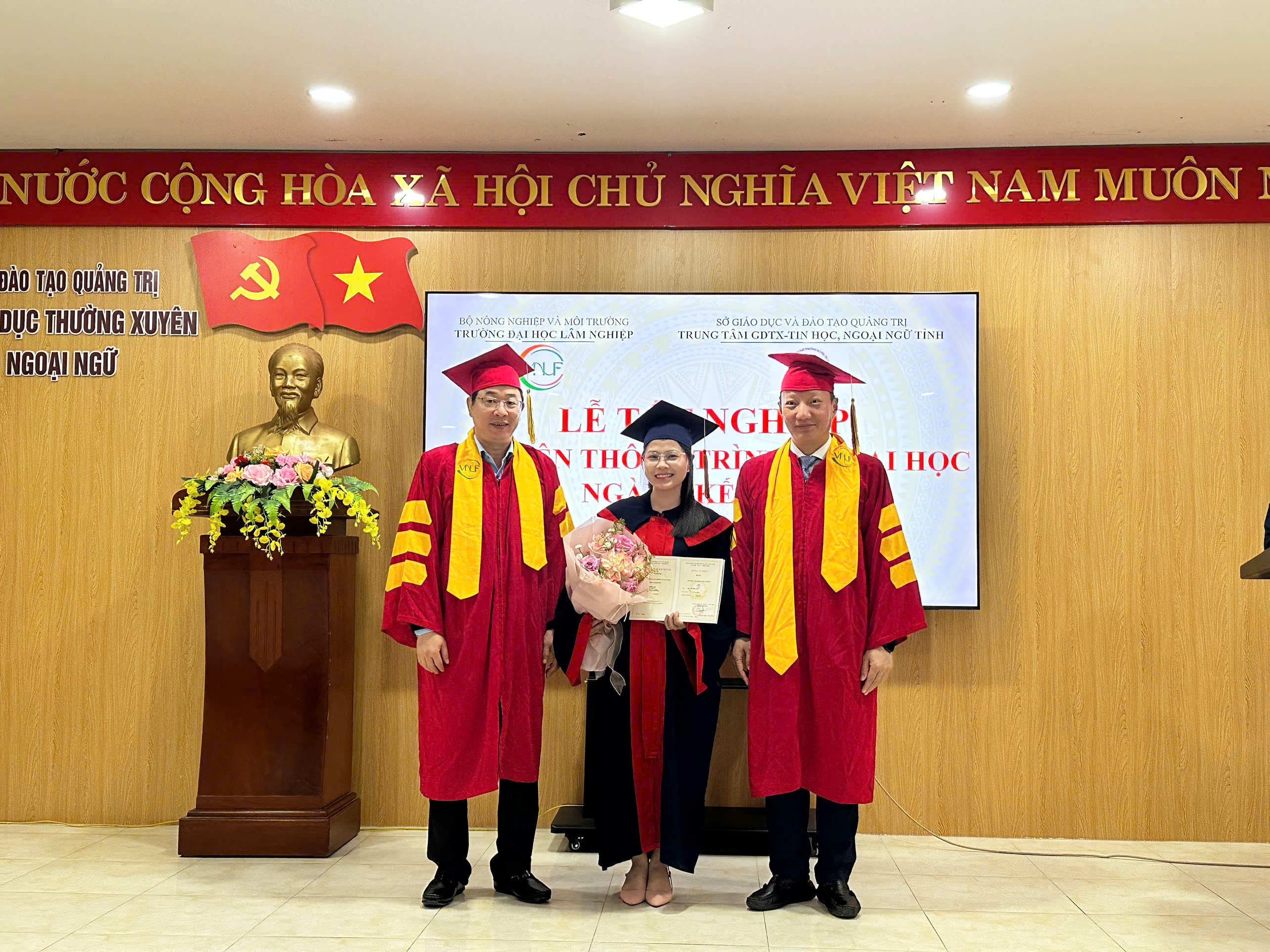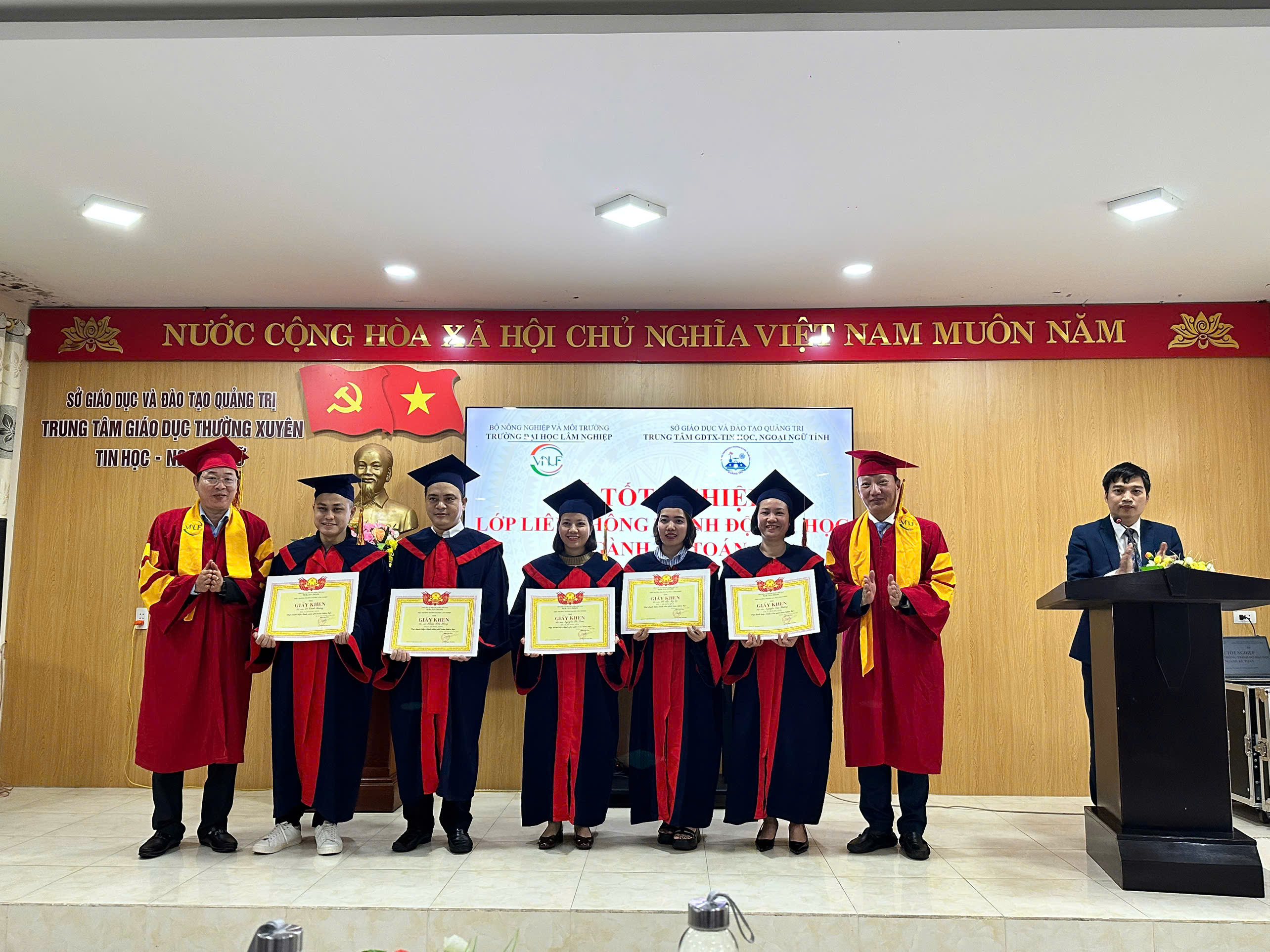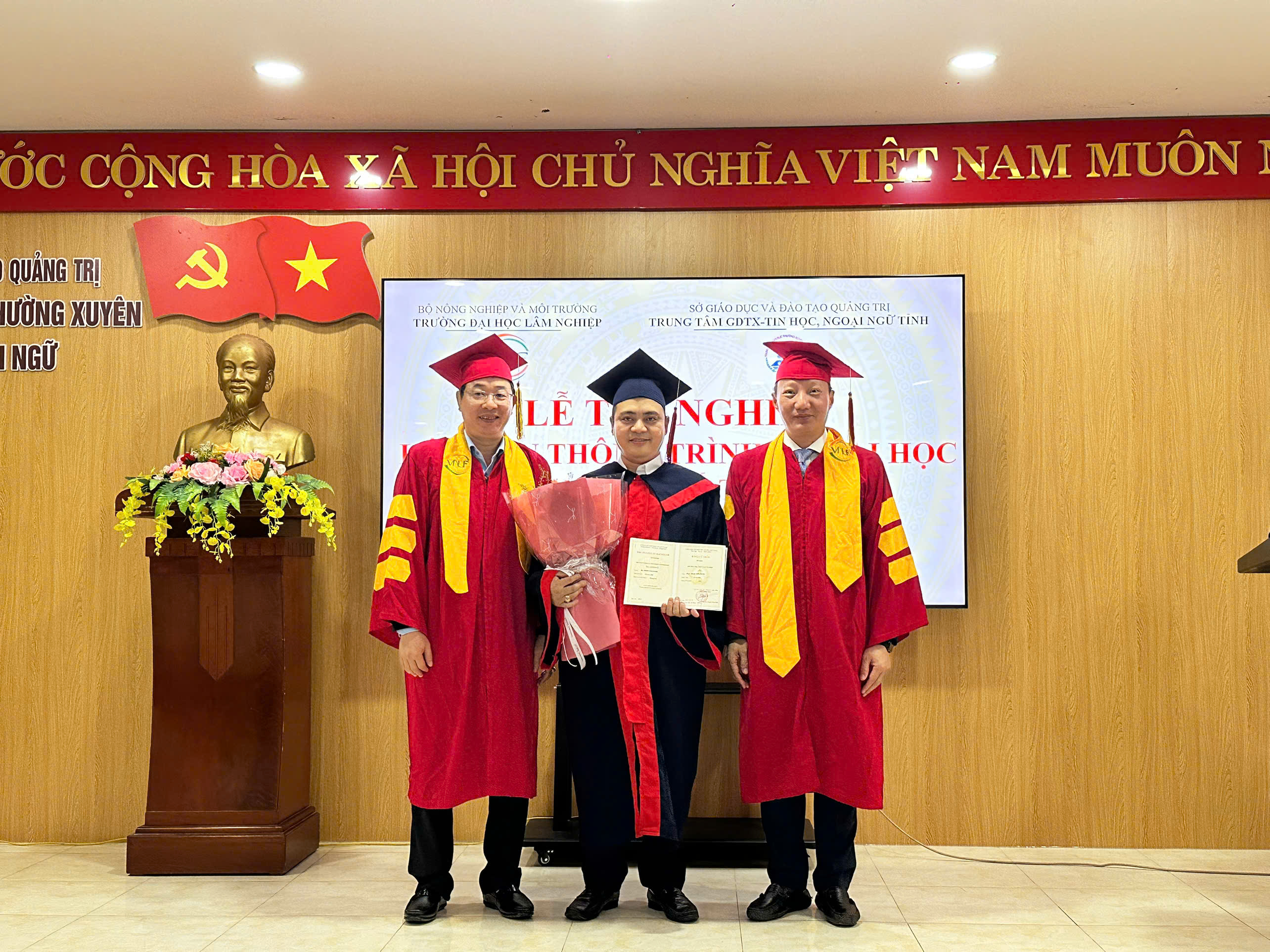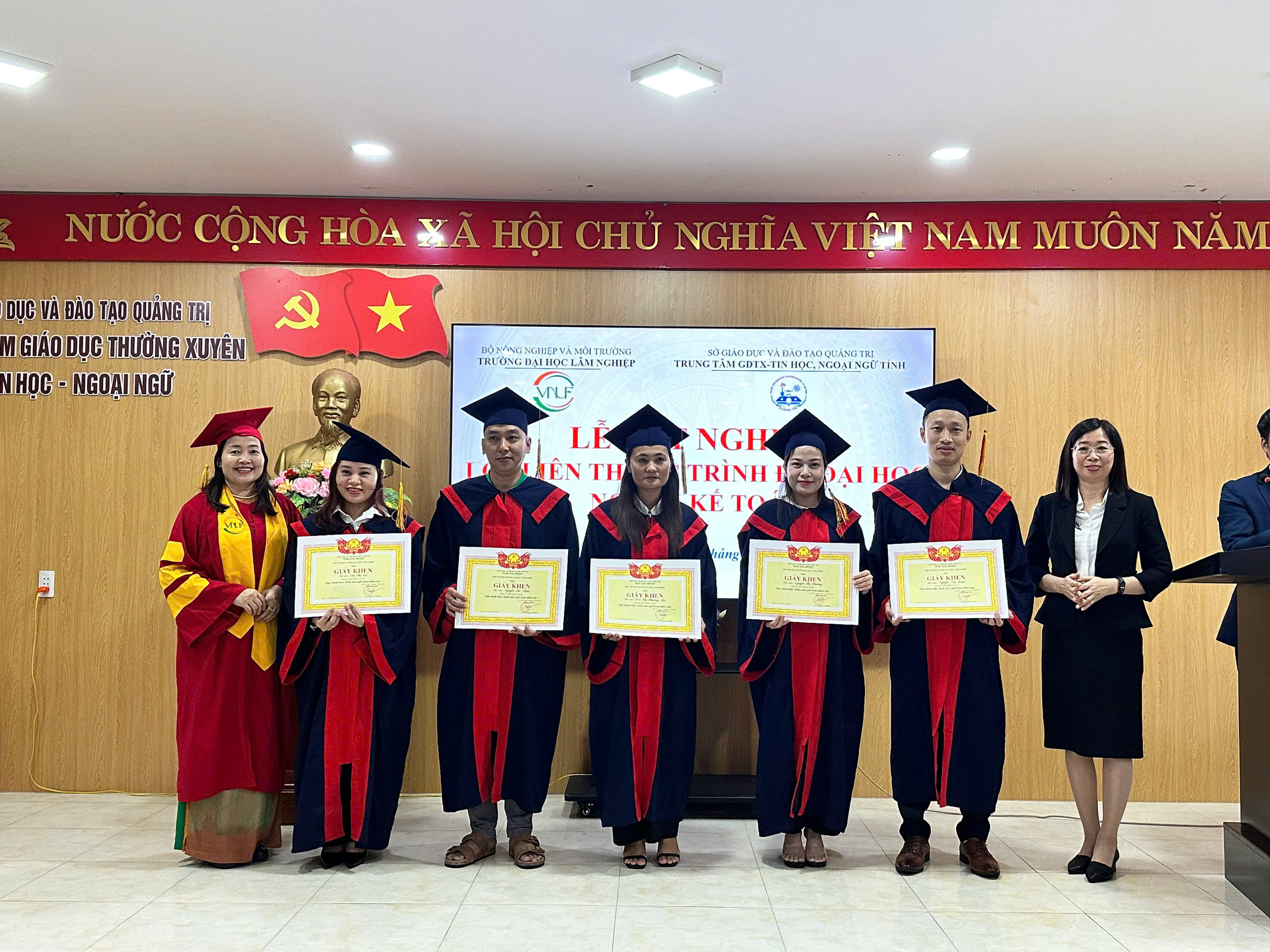 “Buổi lễ khép lại trong niềm vui hân hoan và những cái bắt tay thắm thiết. Sự thành công của khóa học K68 không chỉ là minh chứng cho uy tín và chất lượng đào tạo của Trường Đại học Lâm nghiệp, mà còn khẳng định mối quan hệ hợp tác trách nhiệm, chuyên nghiệp và hiệu quả với Trung tâm GDTX – Tin học, Ngoại ngữ tỉnh Quảng Trị.