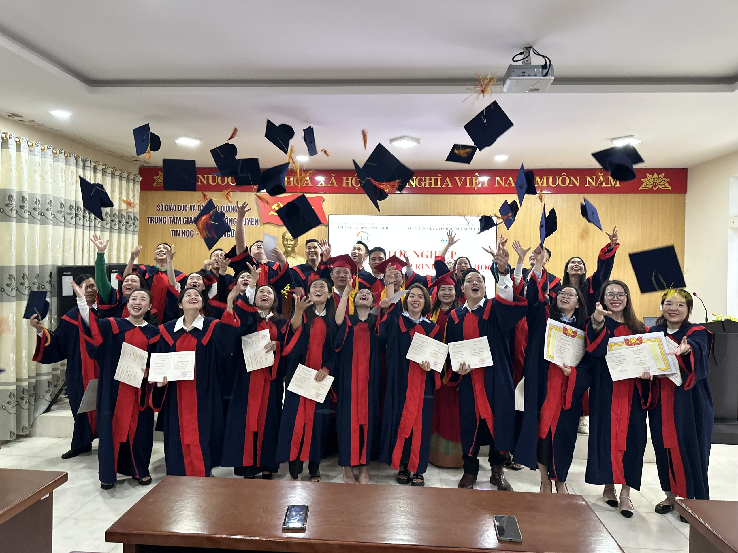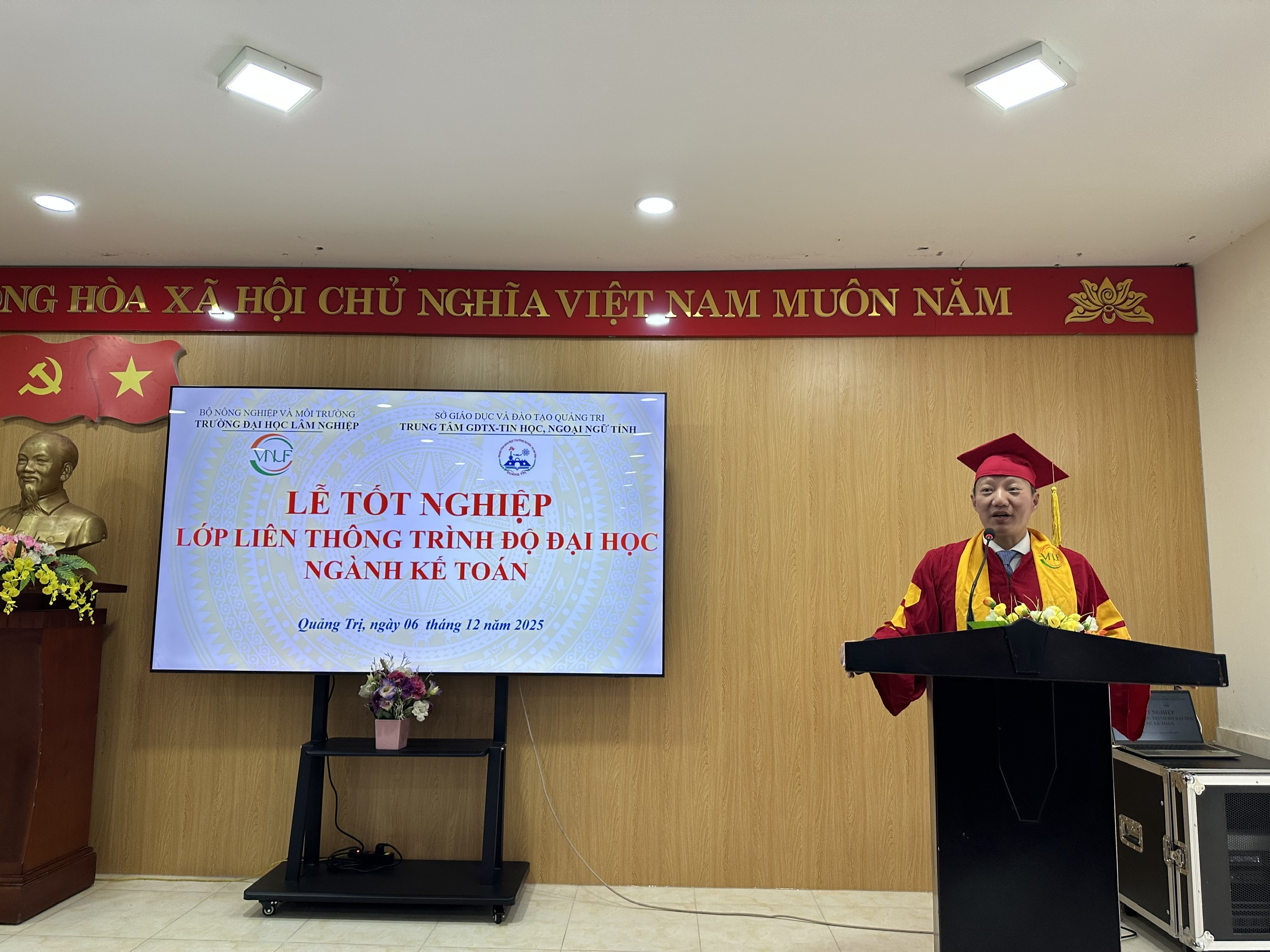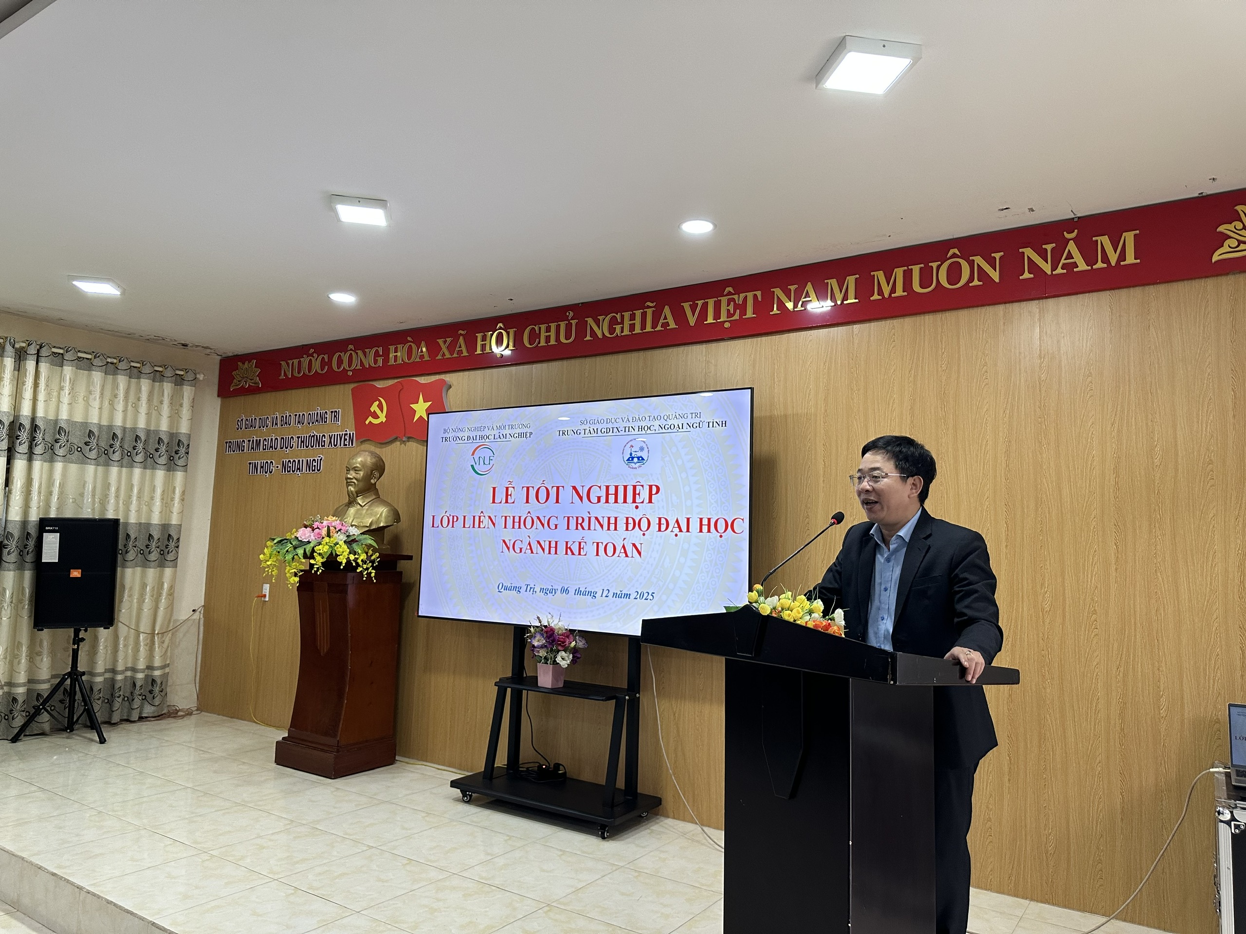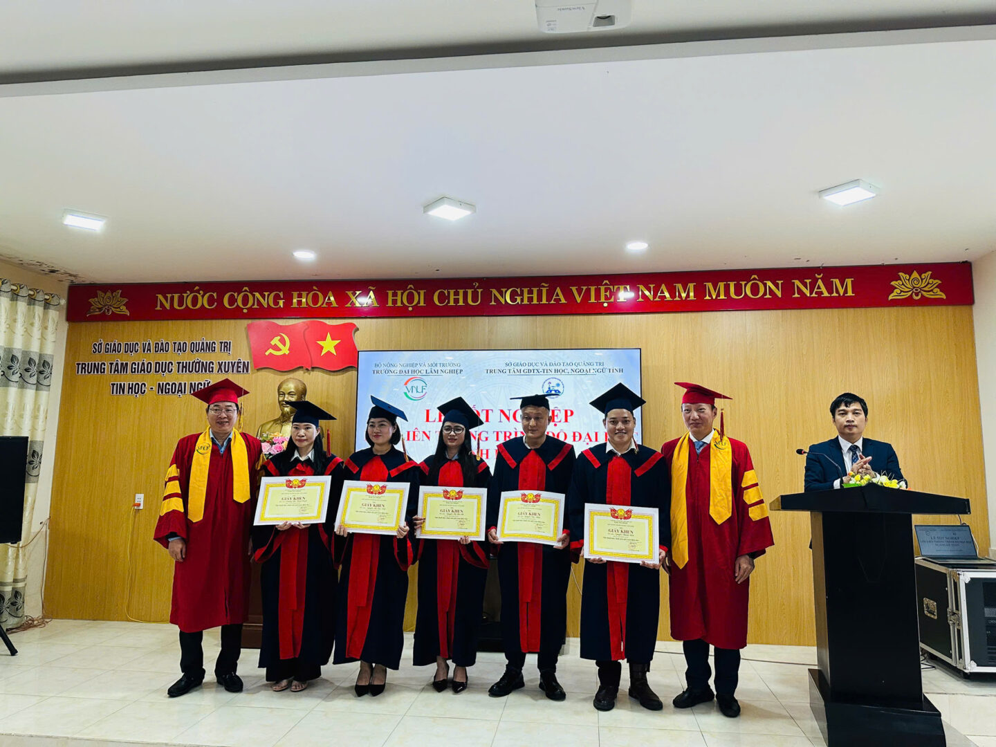 “Buổi lễ khép lại trong niềm vui hân hoan và những cái bắt tay thắm thiết. Sự thành công của khóa học K68 không chỉ là minh chứng cho uy tín và chất lượng đào tạo của Trường Đại học Lâm nghiệp, mà còn khẳng định mối quan hệ hợp tác trách nhiệm, chuyên nghiệp và hiệu quả với Trung tâm GDTX – Tin học, Ngoại ngữ tỉnh Quảng Trị.