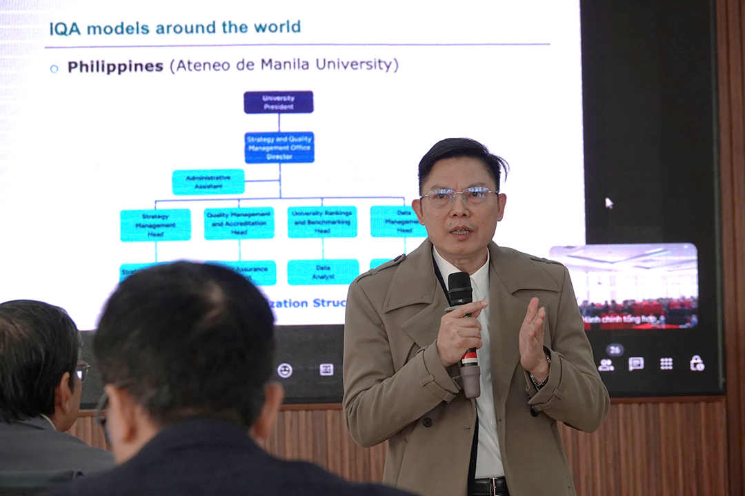 Phát biểu khai mạc, PGS.TS. Phạm Minh Toại, Phó Hiệu trưởng phụ trách công tác đảm bảo chất lượng, nhấn mạnh IQA phải được vận hành nhất quán từ cấp Trường đến từng chương trình đào tạo. Đây vừa là yêu cầu tuân thủ, vừa là công cụ quản trị cốt lõi để kiểm soát và cải tiến liên tục chất lượng đào tạo. Các đơn vị cần rà soát hoạt động đánh giá, bảo đảm gắn chặt chuẩn đầu ra với phương pháp giảng dạy và cách thức đo lường kết quả học tập.