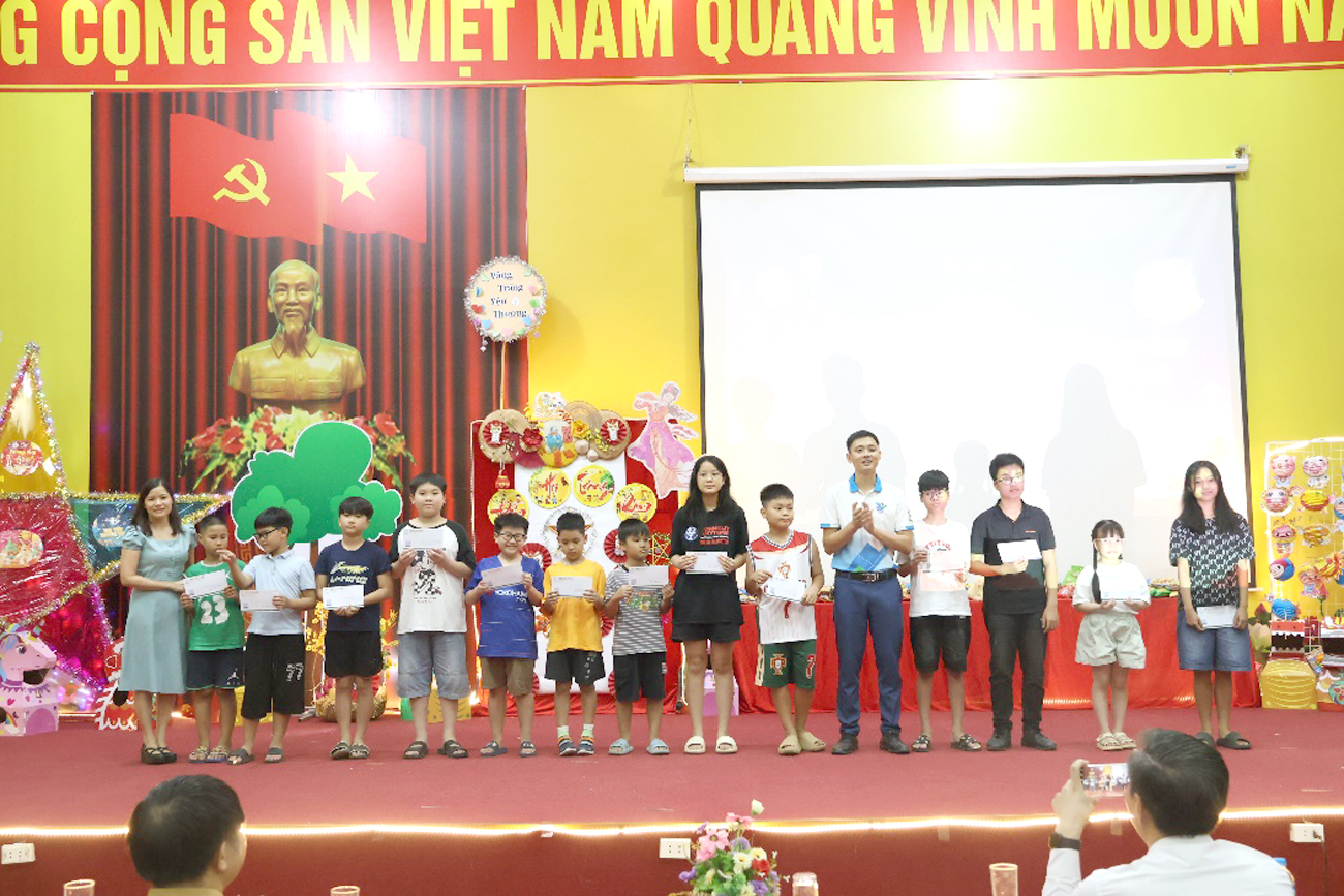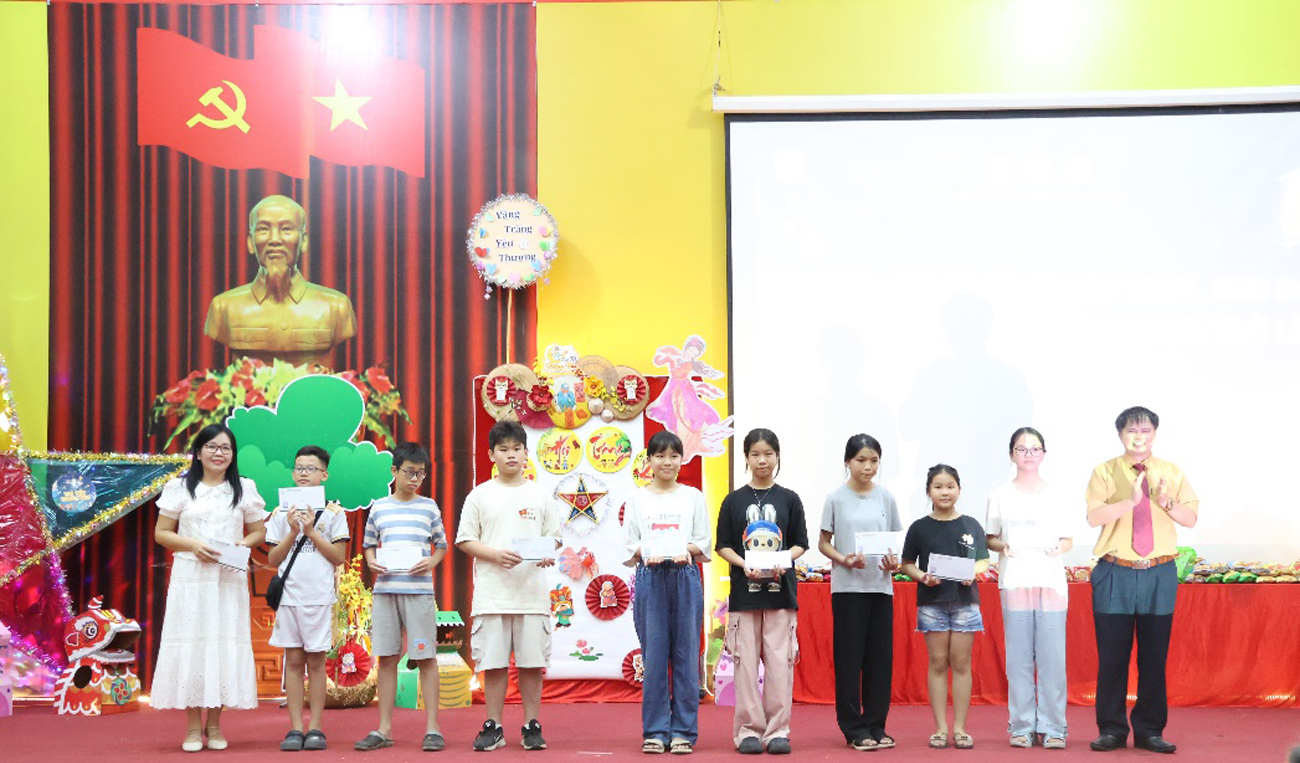 Giây phút đáng nhớ và đầy tự hào của Đêm hội là lễ tuyên dương và trao thưởng cho các em thiếu niên, nhi đồng đạt danh hiệu học sinh xuất sắc năm học 2024 – 2025. Đại diện Nhà trường, cô Trần Thị Thanh Thủy – Trưởng ban Nữ công đã long trọng công bố Quyết định khen thưởng. Ánh mắt rạng ngời, nụ cười hãnh diện của các em và phụ huynh khi bước lên sân khấu nhận phần thưởng xứng đáng đã tạo nên một hình ảnh đẹp, đầy xúc động. Đây không chỉ là sự ghi nhận cho thành tích học tập xuất sắc ở các cấp học, mà còn là nguồn động viên to lớn, khích lệ tinh thần hiếu học, ý chí vươn lên, góp phần vun đắp những ước mơ tương lai của các em bay cao, bay xa hơn nữa.