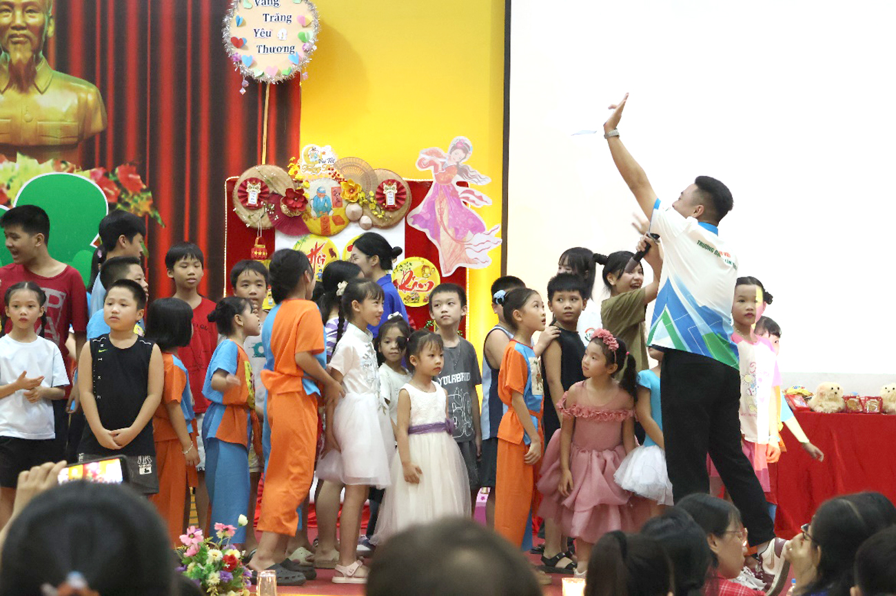 Dưới sự dẫn dắt tươi vui và năng động của các MC là sinh viên Nhà trường, các tiết mục văn nghệ đặc sắc do Hội Sinh viên và các em thiếu nhi biểu diễn, các tiết mục là bài hát về trăng sao, tuổi thơ, mái trường cùng các điệu múa dân gian và hiện đại được dàn dựng công phu đã thực sự thắp sáng không khí hội trường, nhận được những tràng pháo tay không ngớt từ khán giả. Mỗi tiết mục không chỉ là món quà tinh thần mà còn là minh chứng cho tài năng, sự tự tin và niềm đam mê nghệ thuật của thế hệ trẻ.